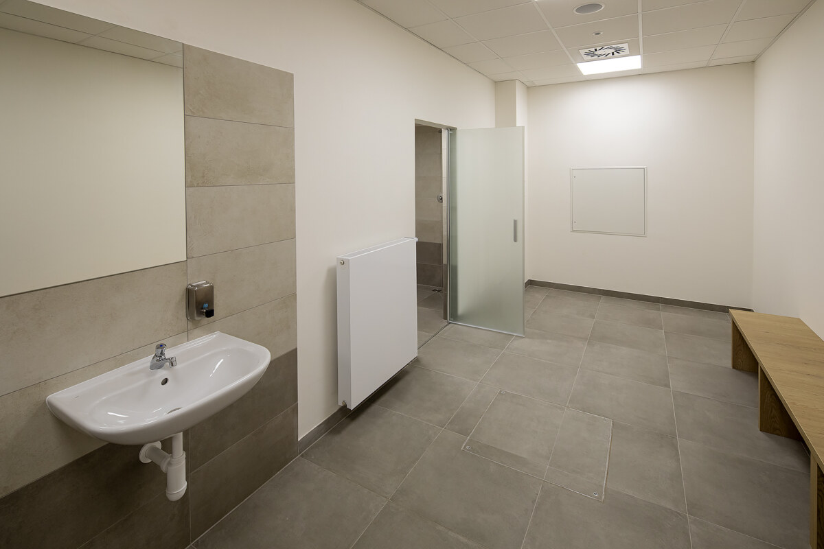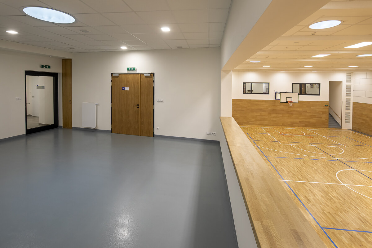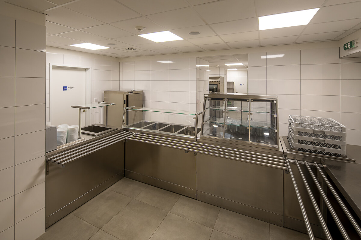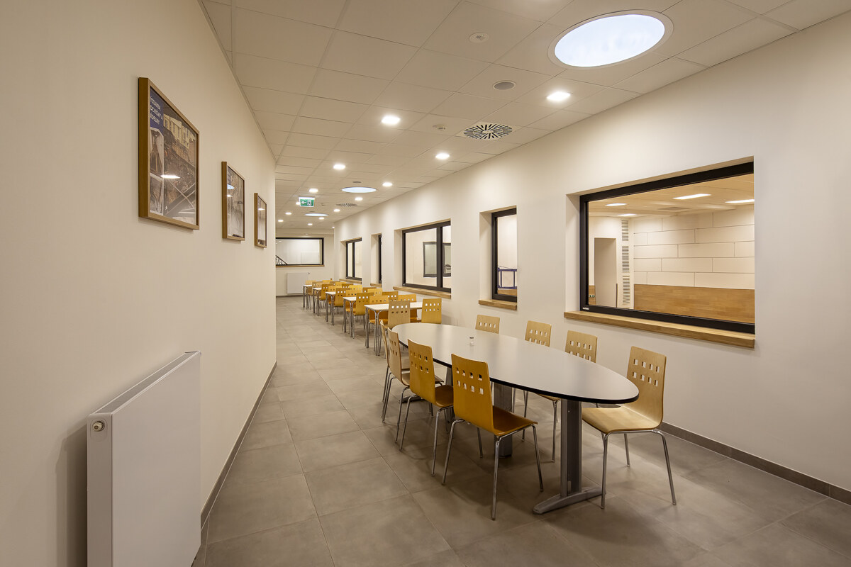 Součástí projektu byla rovněž kompletní přestavba stávajícího prostoru na moderní jídelnu s kapacitou až 200 strávníků. Nové zázemí pro výdej stravy je navrženo s důrazem na funkčnost a komfort provozu. K zajištění bezbariérového přístupu slouží nový výtah. Projekt znamená významné rozšíření funkčních prostor školy a zajišťuje kvalitní podmínky pro stravování a sportovní vyžití studentů i zaměstnanců.