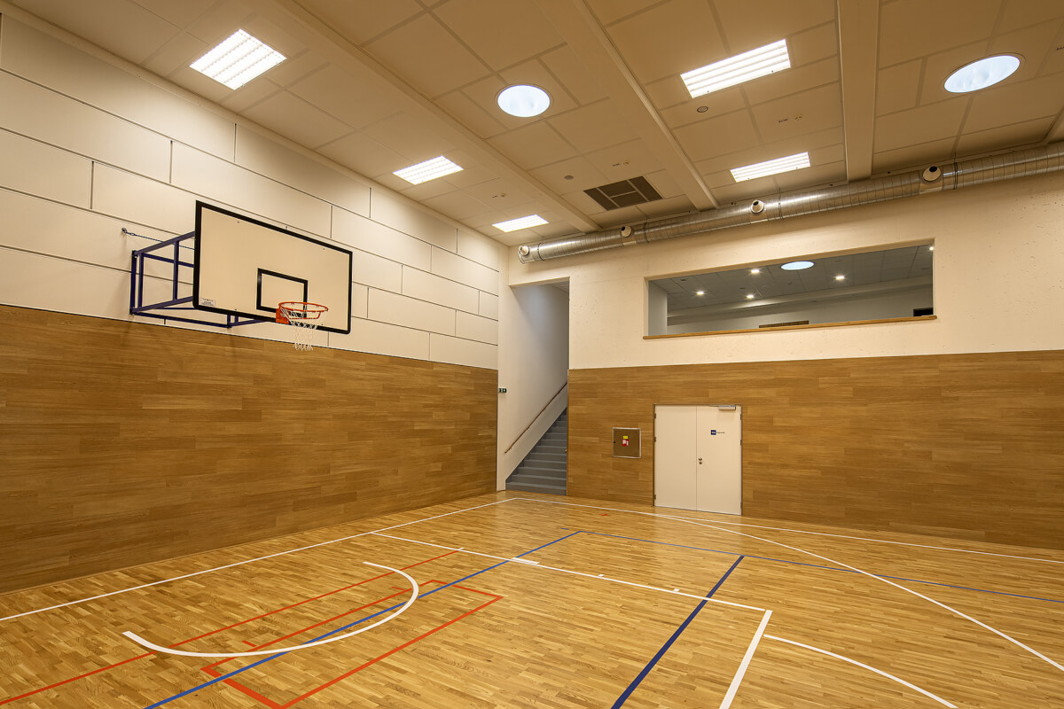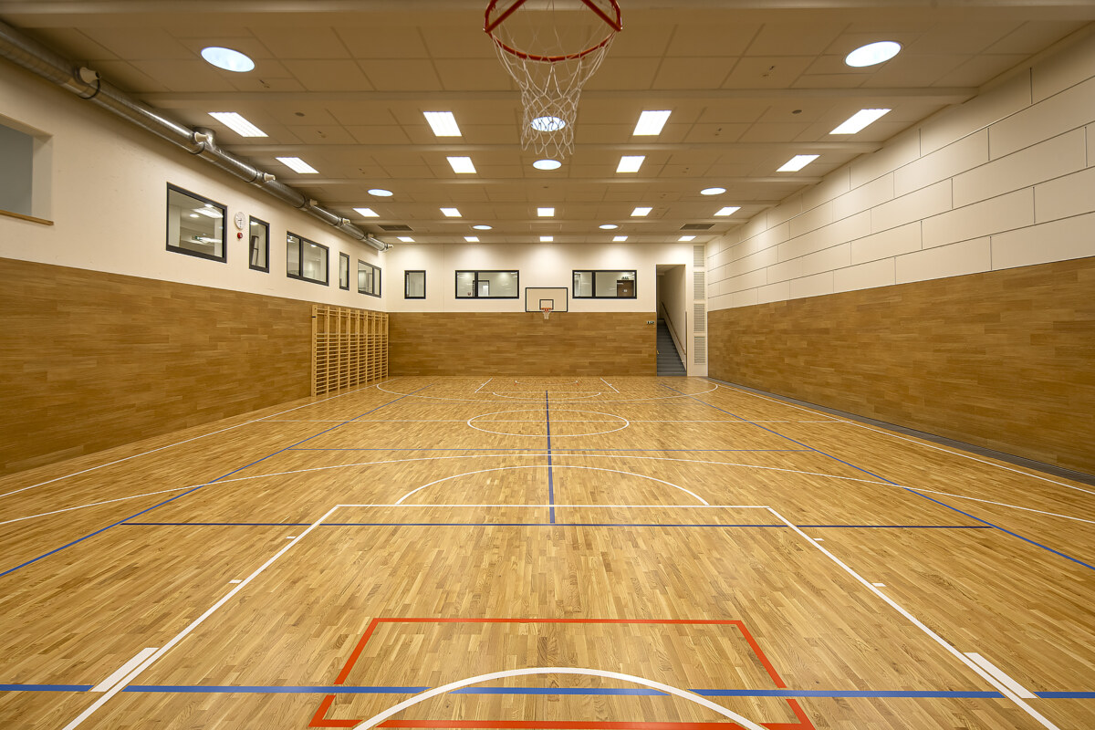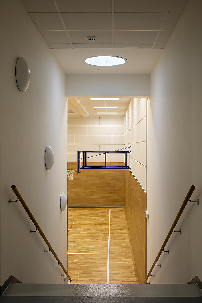 Sportovní hala je monolitickou konstrukcí umístěnou ve vnitrobloku školy. Objekt se zelenou střechou s rozměry hřiště 25 × 15 metrů je vybaven i zázemím pro sportovce s malou posilovnou. Do této doby škola takové zázemí pro výuku tělesné výchovy postrádala.