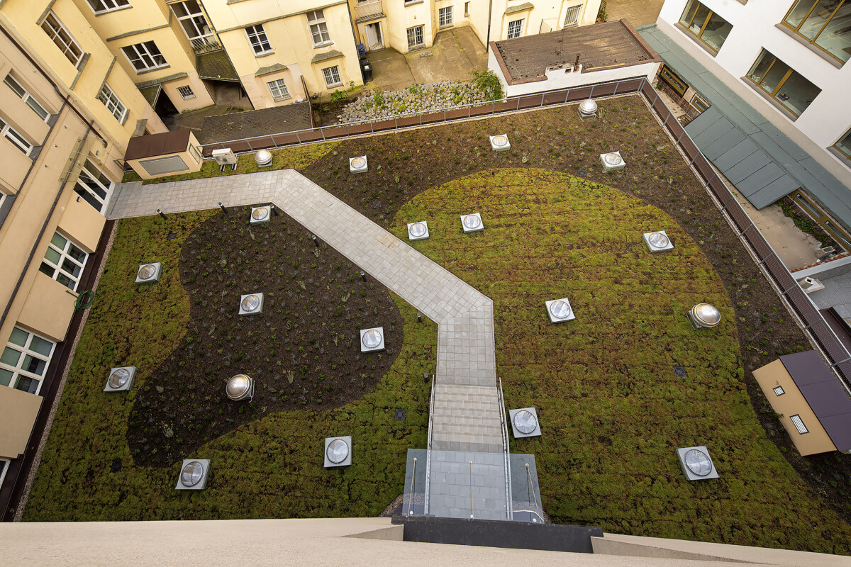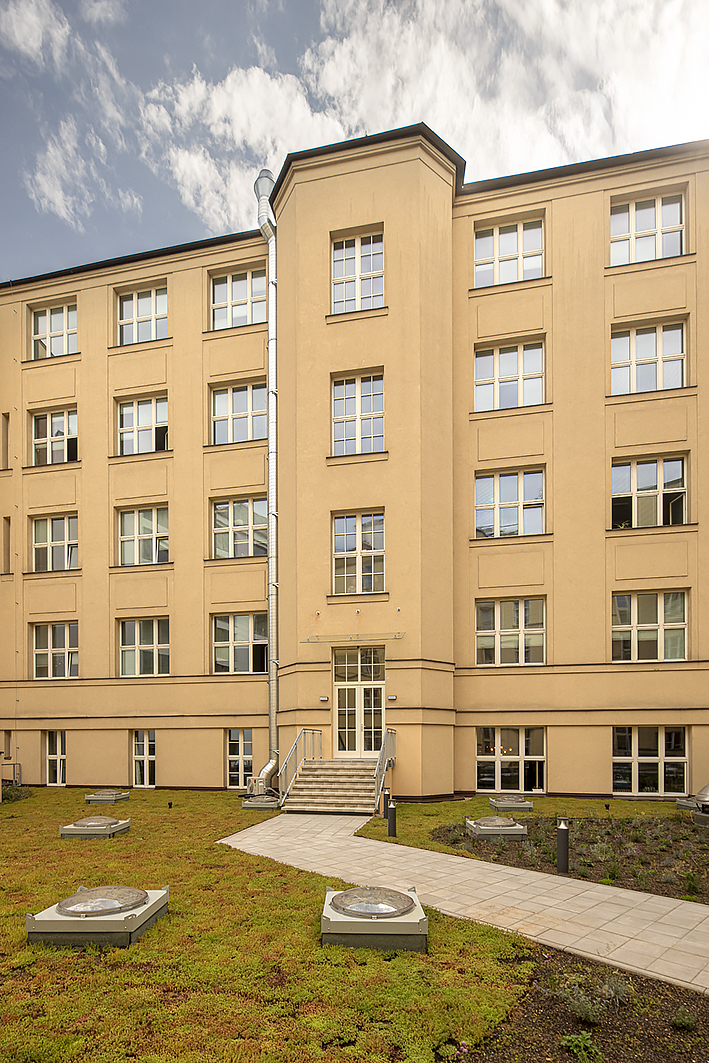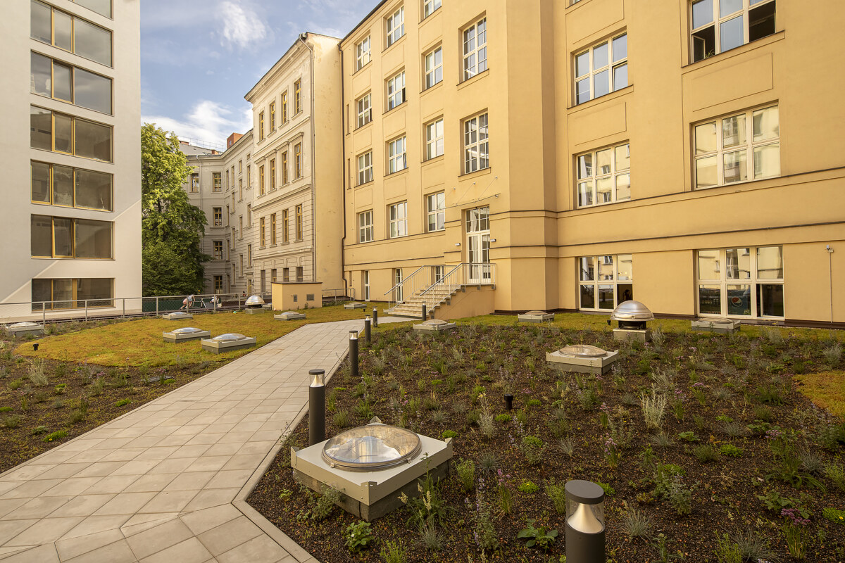 V rámci rozšíření a modernizace areálu Vyšší odborné školy stavební a Střední průmyslové školy stavební Dušní v Praze byla realizována novostavba sportovní haly a přestavba stávajících prostor na novou školní jídelnu. Stavba probíhala bezmála dva roky pod vedením společnosti GEMO jako generálního dodavatele. Celková investice, kterou financovalo hlavní město Praha, dosáhla téměř 130 milionů korun. Slavnostní otevření areálu proběhlo dne 29. dubna 2025.
