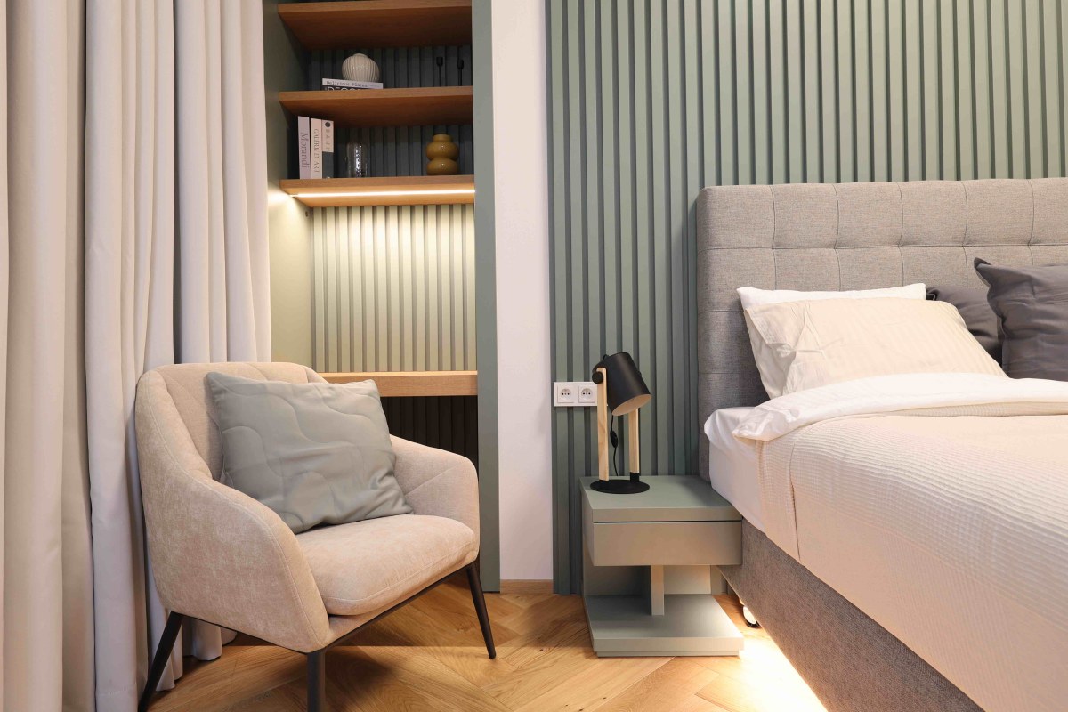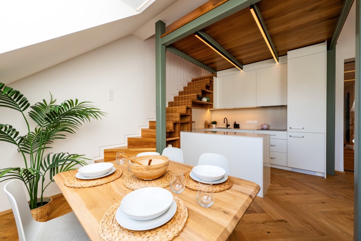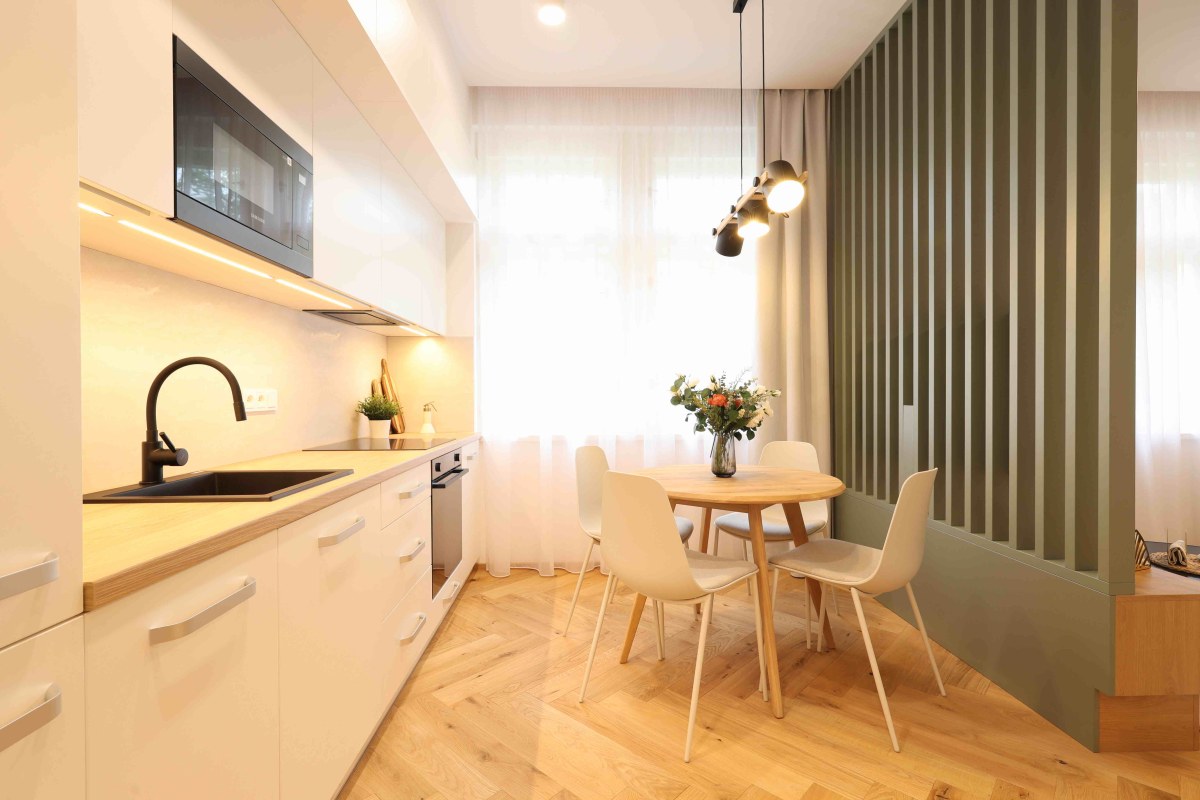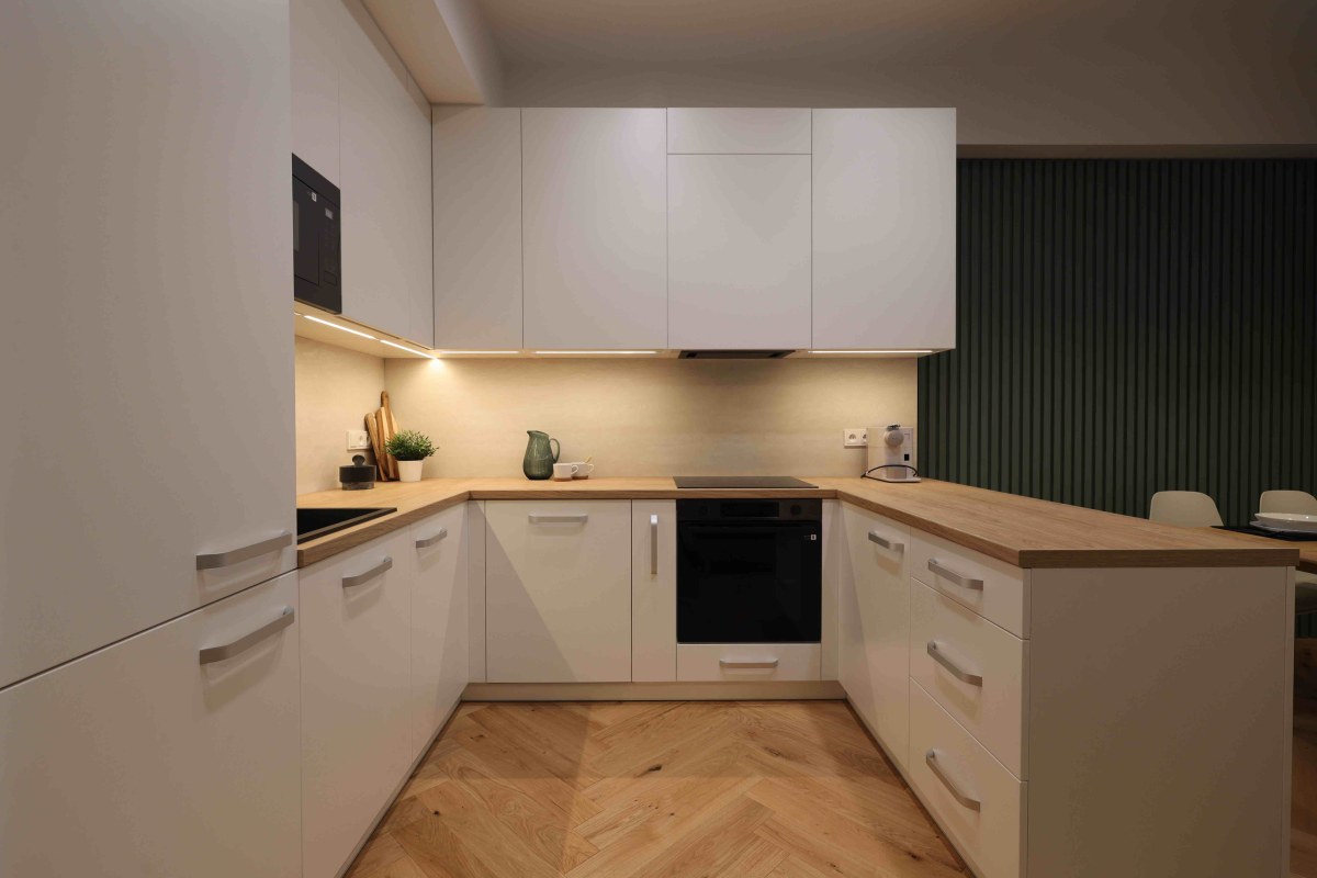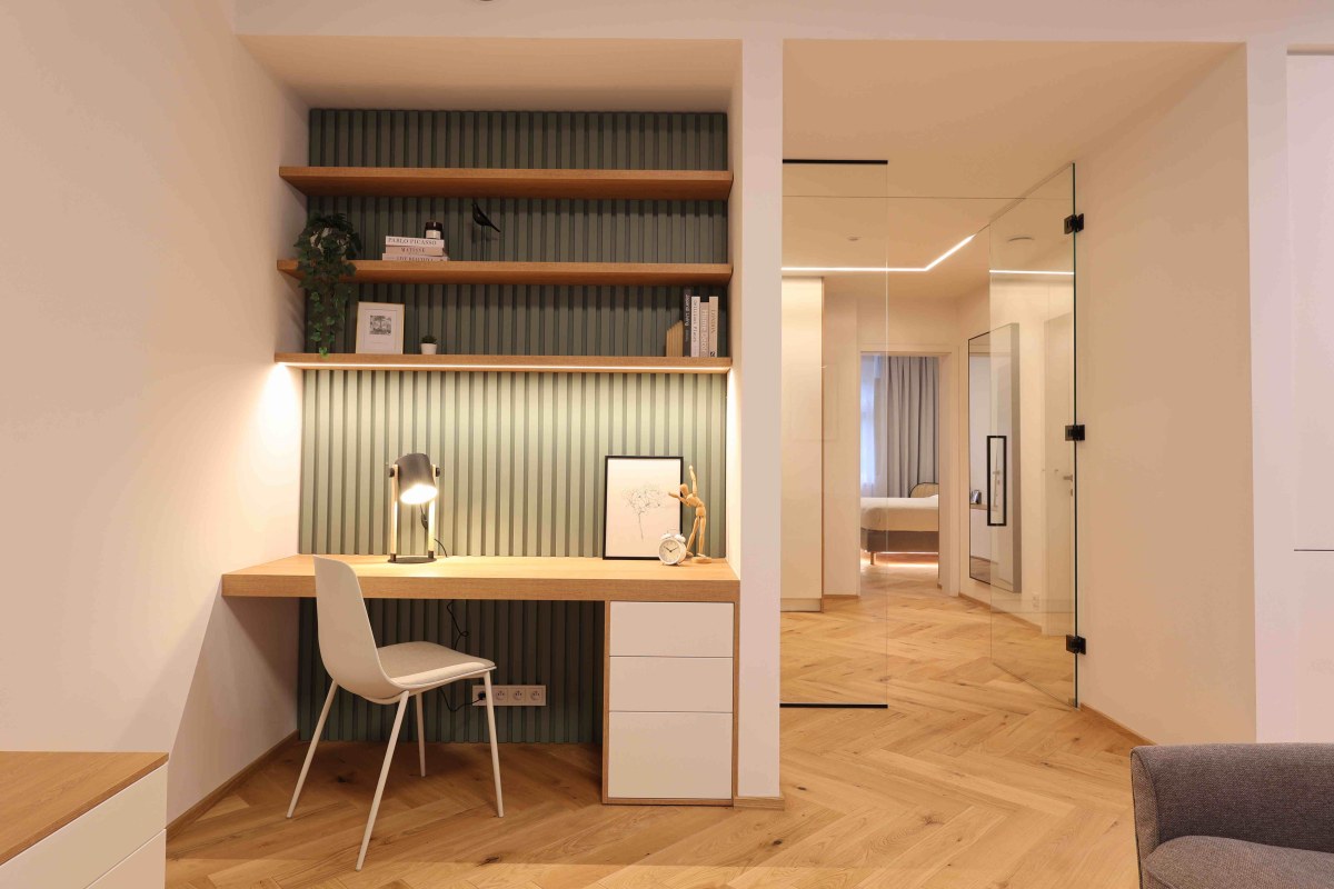 Vstupní dveře do bytů a zábradlí na hlavním schodišti jsou provedeny v zelené barvě. Ta se propisuje v bytových jednotkách v podobě nábytkových paravánů a lamelových obkladů stěn. Podlahy v bytech jsou dřevěné, kladené v parketovém vzoru. Celkově je design interiéru laděn v jemných světlých barvách v kombinaci s přírodním odstínem dřeva. Vzdušnost bytů dotváří skleněné dvoukřídlé interiérové dveře do hlavního obytného prostoru.