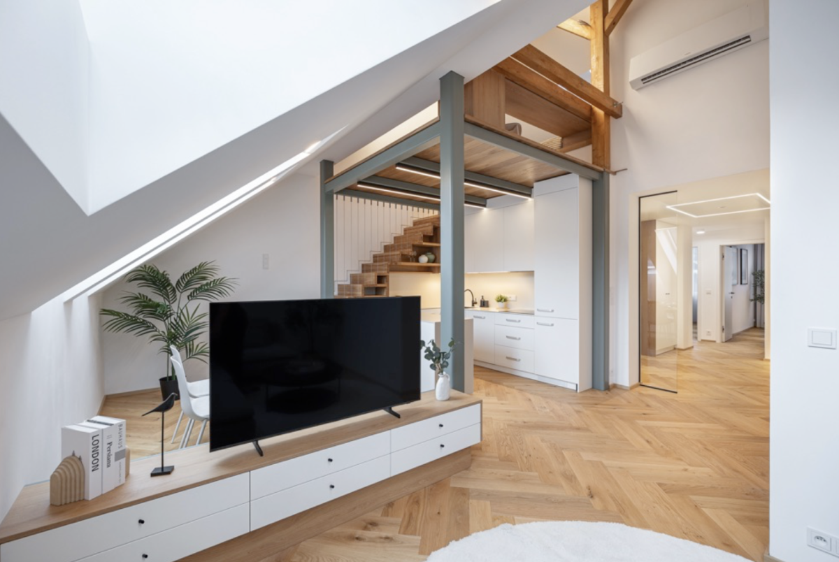 Objekt má pět nadzemních a jedno podzemní podlaží. Sklepní prostory byly očištěny a budou využity pro komerční účely. V nadzemních podlažích je navrženo celkem 15 bytových jednotek s dispozicemi 1+kk – 3+kk. Důraz v dispozičním řešení byl kladen na dostatečnou velikost zázemí bytů, úložného prostoru i pokojů. V podkroví objektu jsou nově navrženy dvě větší bytové jednotky využívající sklon střechy k umístění galerie pro spaní.