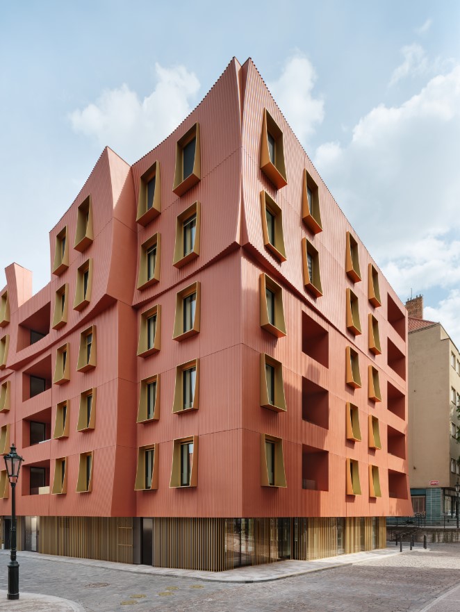 Autorem návrhu je architekt Zdeněk Fránek, jehož návrh vzešel z uzavřené architektonické soutěže pořádané investorem CREDITAS Real Estate. Dům se skládá ze dvou objemově oddělených hmot propojených podnoží, s výraznou fasádou v odstínu okolních střech a zlatými šambránami. Architektura záměrně neprovokuje, ale doplňuje strukturu města a vytváří soudobou, sebevědomou a zároveň pokornou vrstvu, která se v co největší míře začleňuje do okolí.